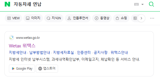 ① 네이버에서 위택스 or 자동차세 연납 검색